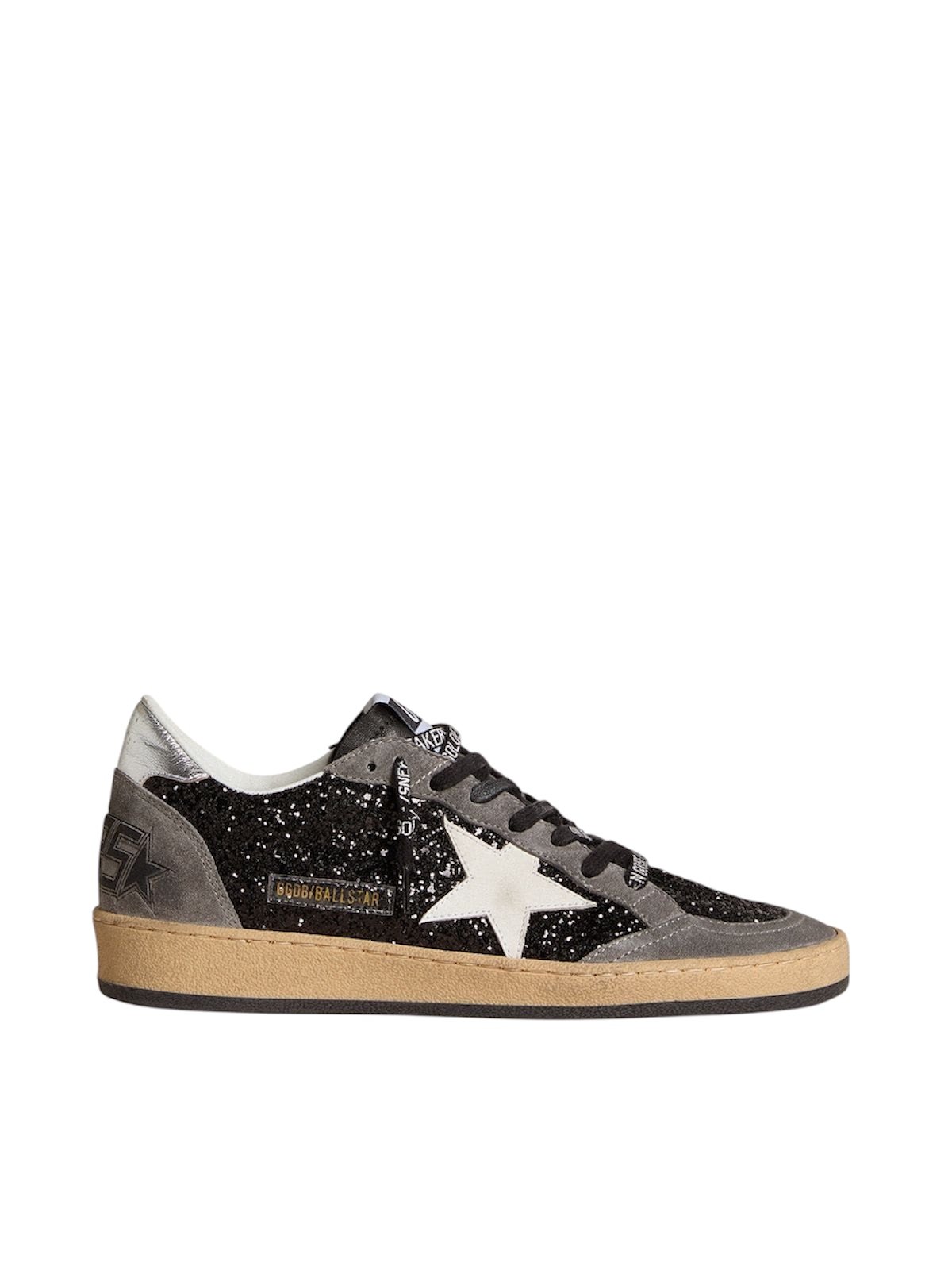 Golden Goose Ball Star in glitter with leather star and metallic leather heel tab